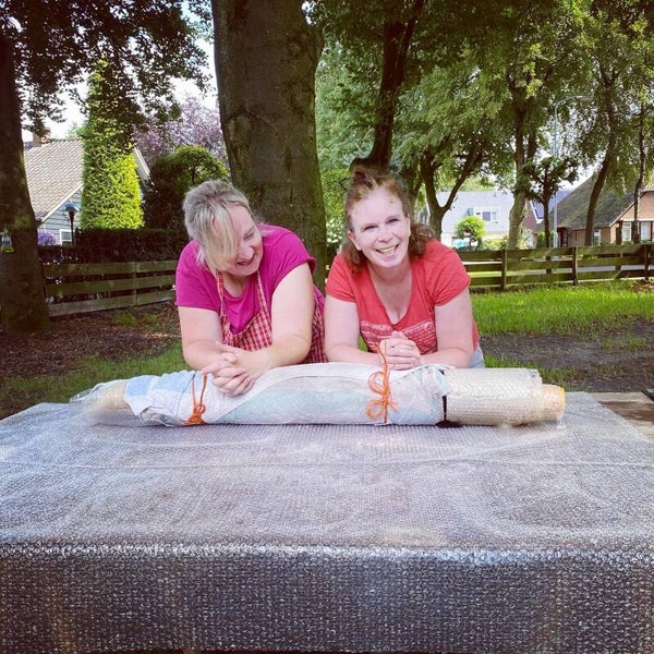 Tijdens het vilten gebruiken we veel water en zeep. Trek daarom kleren en schoenen aan die daar tegen kunnen. Vachtvilten vraagt om fysieke kracht, omdat het gepaard gaat met veel wrijven, duwen en rollen.